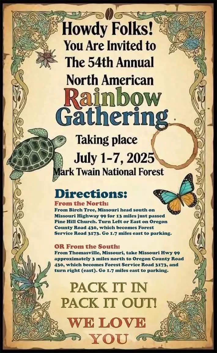To avoid confusion, the link above has been updated with the new directions, same as below. — WebmasterFrom: Dy Date: Fri, 20 Jun 2025 22:16:14 -0400 Subject: Re: Directions to GatheringSomeone just sent me this, not sure of its validity yetHowdy Folks for 2025 National Gathering.